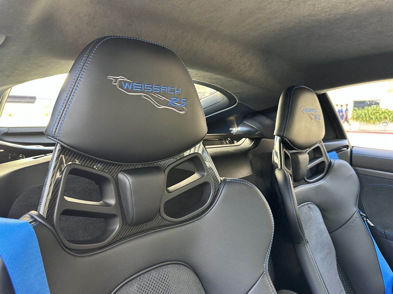 - Weissach PackageIncludes logo on top of rear windshield in dark silver, titanium tailpipes, dashboard in Race-Tex, dashboard trim with Weissach logo, headrests with Weissach logo, and exposed carbon fiber air box, air intakes, trunk lid, air blade behind driver and passenger windows, exterior mirrors, and rear wing.